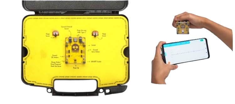 A robust and fully upgradable robotics kit designed for beginners, students, and hobbyists. It is ideal for hands-on learning, experimentation, and project development. The kit features a powerful RISC-V processor, long-lasting rechargeable battery, and versatile connectivity options including Bluetooth, Zigbee, and USB. Its modular design supports seamless expansion with a wide range of sensors and AI-based add-ons, enabling learners to build progressively advanced robotics solutions.